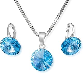 Damen Schmuck Set echt Silber Swarovski Elements Anhänger hell-blau längen-verstellbar Schmucketui Kleine Geschenke für Frauen Weihnachten