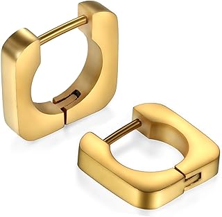 Schmuck Herren Damen Creolen Ohrringe, Edelstahl Geometrisch Quadrat Viereck Ohrstecker Ohrhänger Ohrschmuck Ohrklemmen, Silber Schwarz Gold