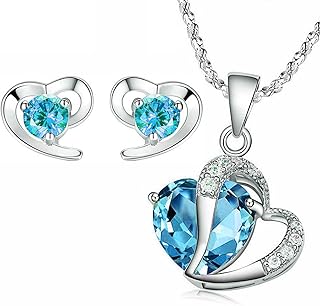 Edelstahl Damen Schmuckset *Türkis Herz* Silber Halskette mit Anhänger & Ohrringe mit Zirkonia Steinchen besetzt inkl. Schmuckbeutel