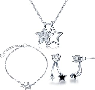 925 Sterling Silber Zirkonia Sterne Halskette Charm-Armband Armkette Ohrstecker Schmuck Set Kette mit Anhänger Armkette Ohrringe Jackets Set für Damen Mädchen
