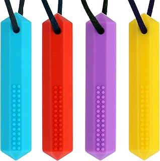 Sensorische Kau-Halsketten (4 Stück) für Kinder mit Zahnung, ADHS, Autismus, Beißbedürfnisse, orale Motorik-Kaubeißring, Silikon-Kauschmuck für Jungen und Mädchen (Stil 1)