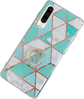 Uposao Kompatibel mit Huawei P30 Hülle mit 360 Grad Ring Ständer Glitzer Bling Strass Glänzend Mädchen Männer TPU Silikon Marmor Muster Handyhülle Schutzhülle Tasche Case,Grün