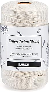 Makramee-Draht, 2 mm, 220 m, 100 % Natur, Baumwollgarn, Makramee, Schnur zum Selbermachen, für Traumfänger, Wandbehang, Pflanzenaufhänger, Handwerk, Geschenk, Dekoration (beige)